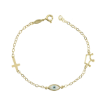 Βραχιόλι παιδικό επιχρυσωμένο, ματάκι, Σταυρός & καρδούλες 925