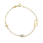 Βραχιόλι παιδικό επιχρυσωμένο ρόζ ματάκι, Σταυρός & στέμμα 925