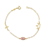 Βραχιόλι παιδικό επιχρυσωμένο ρόζ ματάκι, Σταυρός & καρδούλες 925