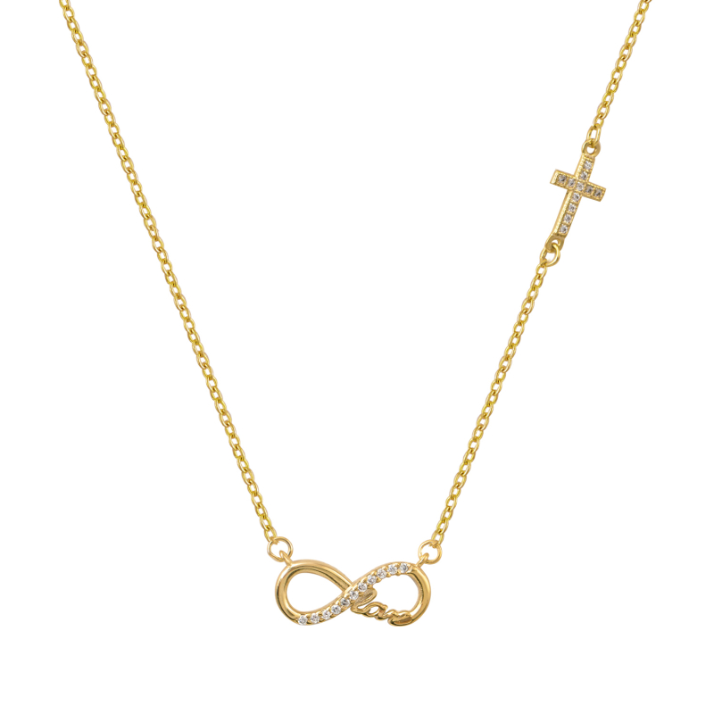 Κολιέ Ρόζ Χρυσό με αλυσίδα, Cz άπειρο & Love ασήμι 925