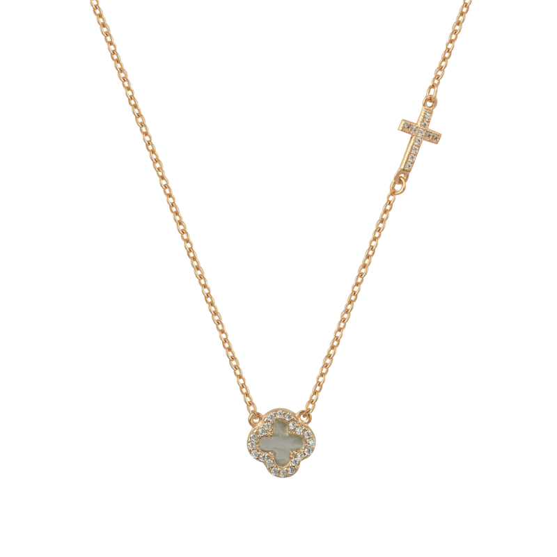 Κολιέ Ρόζ Χρυσό με αλυσίδα, Cz τράφυλλο τριφύλλι ασήμι 925