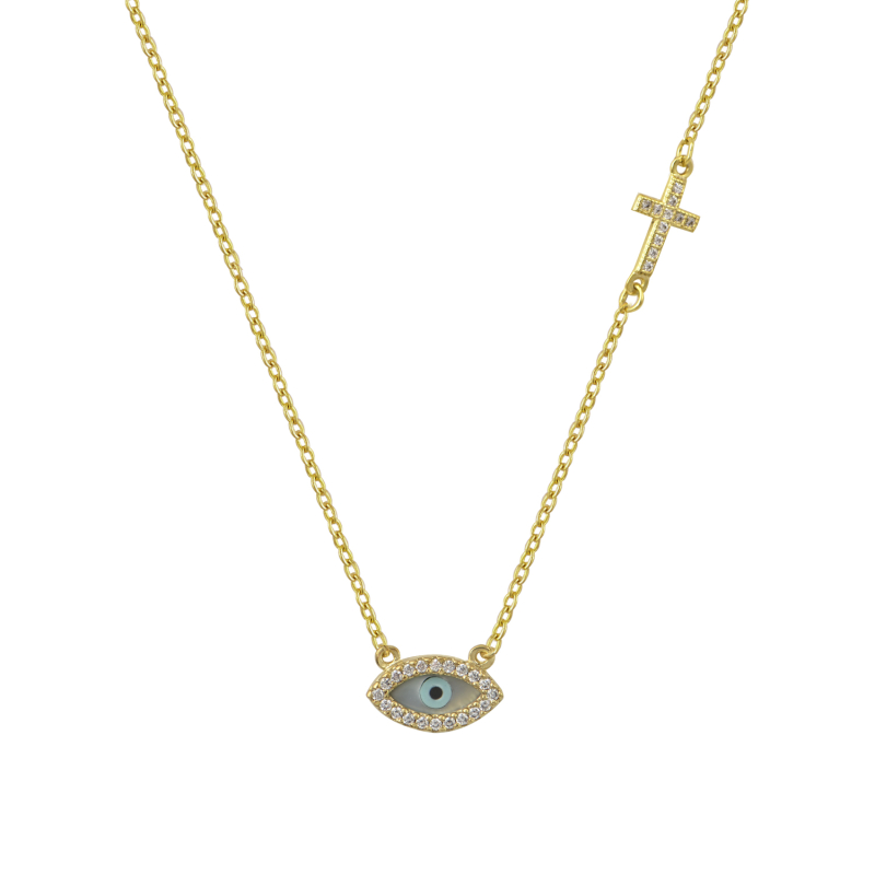 Κολιέ επίχρυσο με αλυσίδα, Cz μάτι ασήμι 925