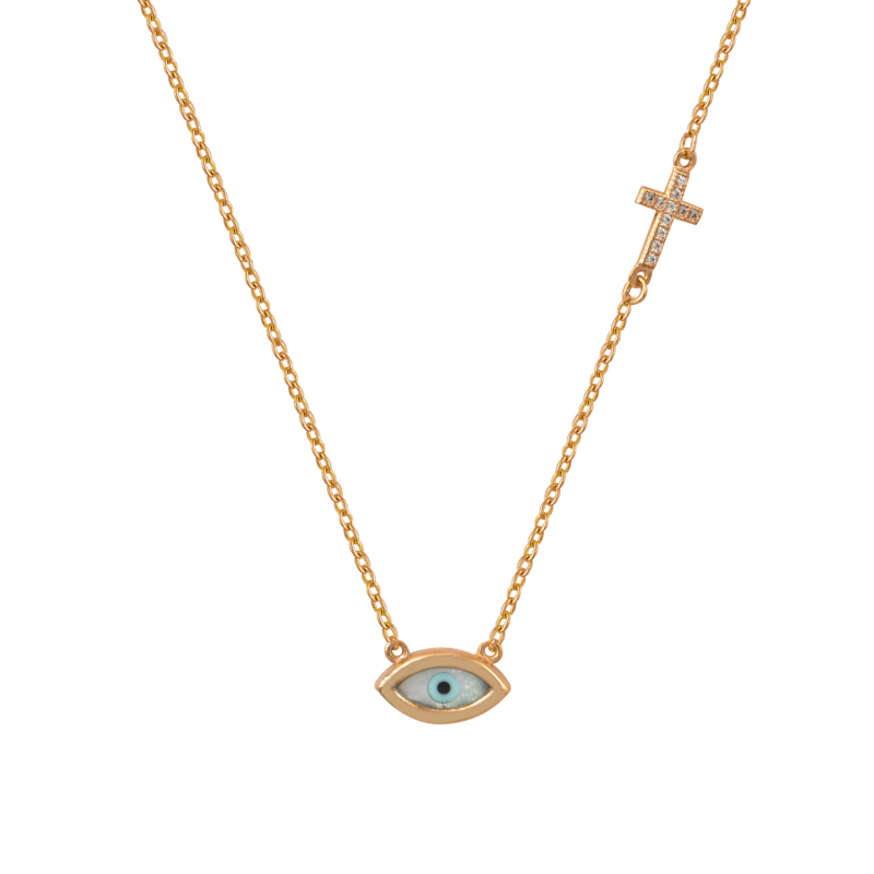 Κολιέ Ρόζ Χρυσό με αλυσίδα, μάτι ασήμι 925