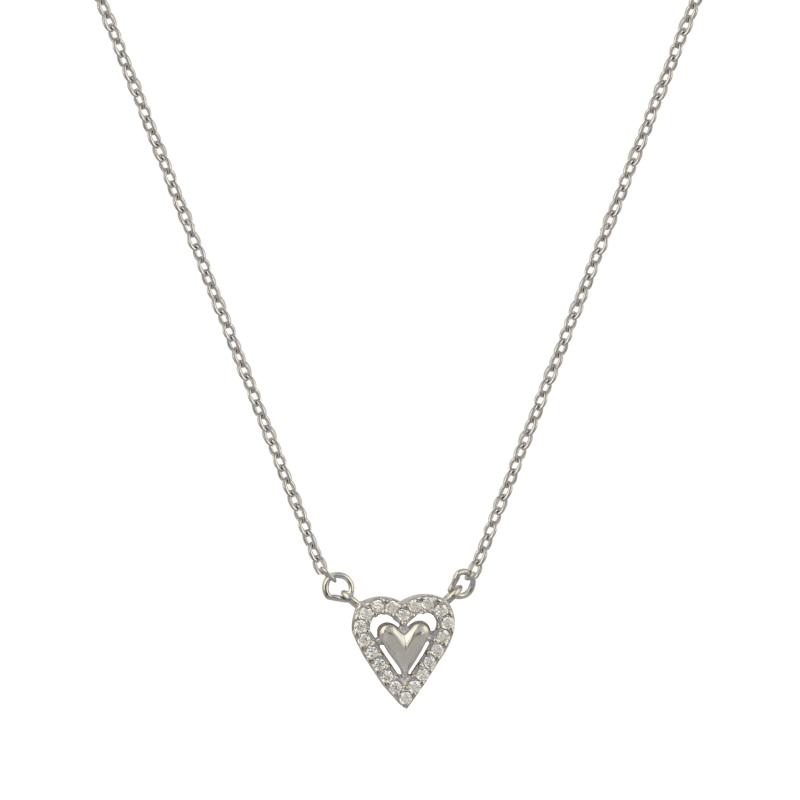 Κολιέ λευκό με αλυσίδα, white Cz καρδιά ασήμι 925