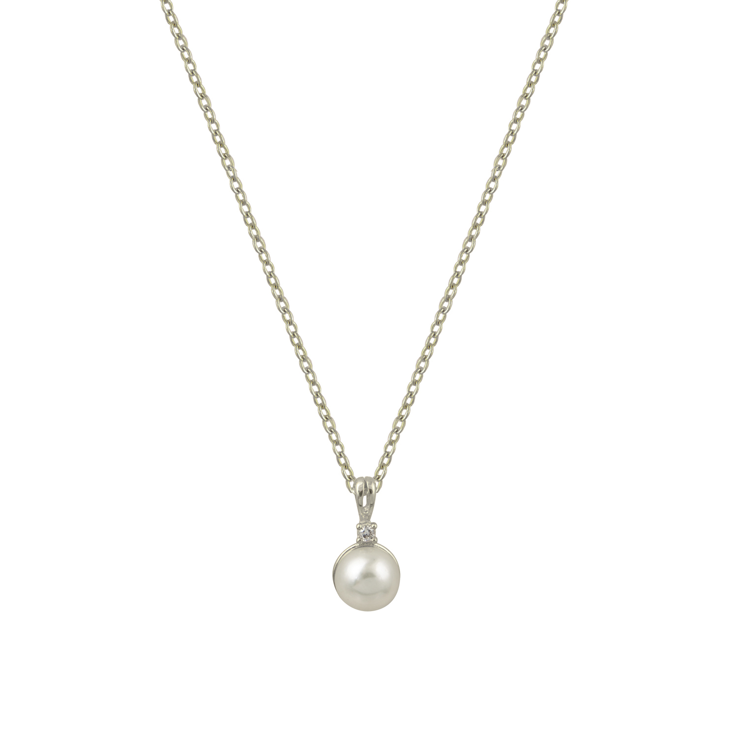 Κολιέ λευκό με αλυσίδα, white Cz μαργαριτάρι ασήμι 925