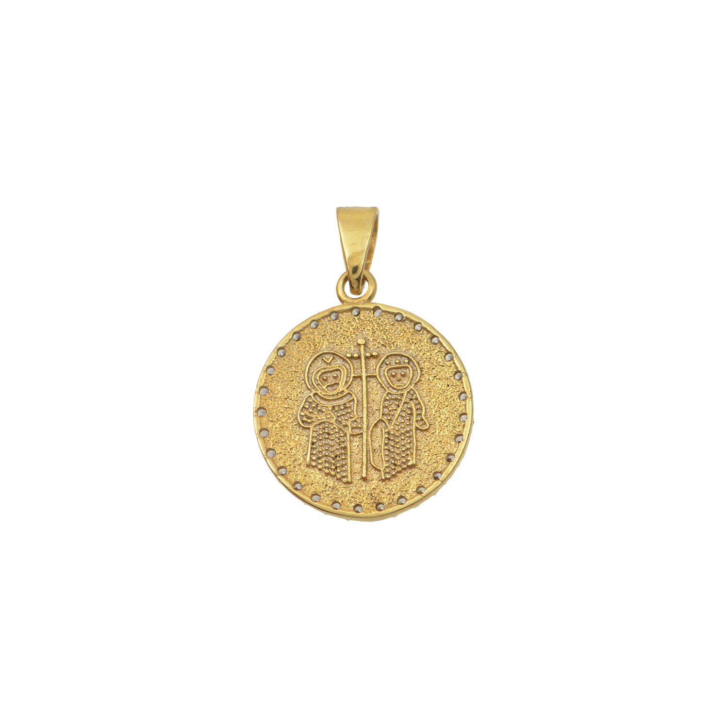 Μοτίφ, Κωνσταντινάτο διπλής όψεως με Ζιργκόν, μεγεθος 1.30 cm σε χρυσό Κ14