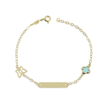 Βραχιόλι ταυτότητα παιδική επιχρυσωμένη turquoises τετράφυλλο τριφύλλι, Στέμμα 925