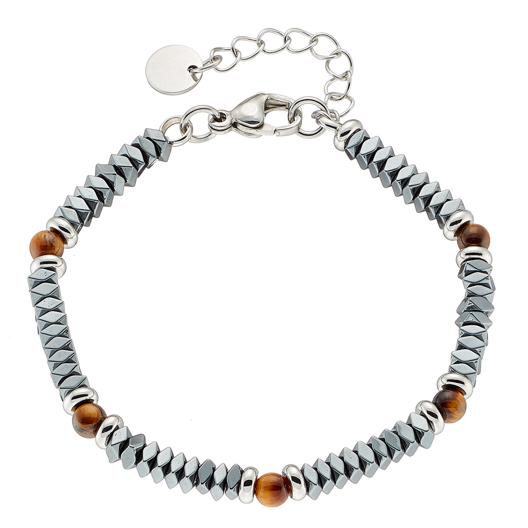 Βραχιόλι αντρικό με πέτρες καφέ και μαύρες ορυκτές δεμένες με ατσάλι