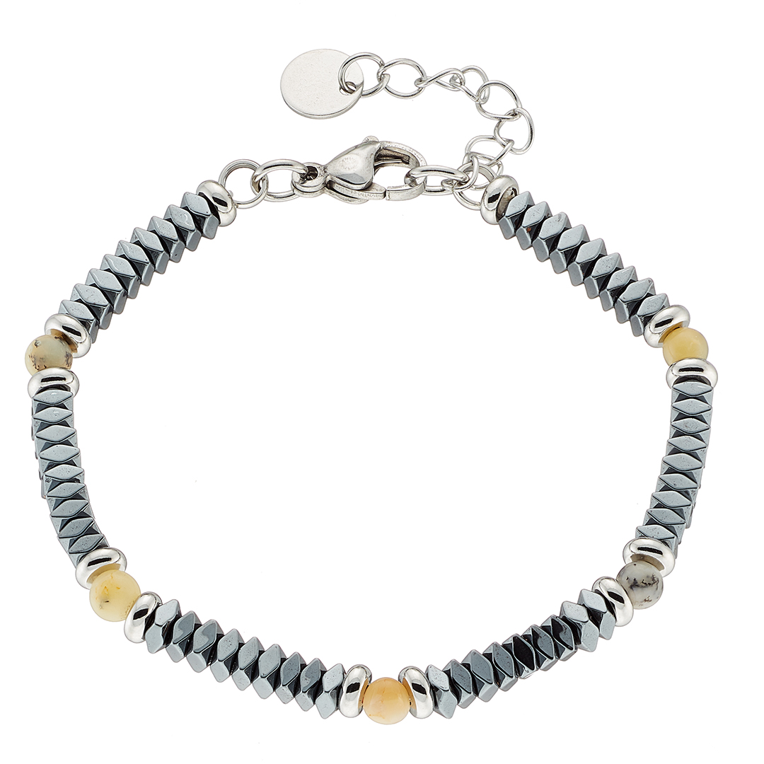 Βραχιόλι αντρικό με πέτρες καφέ και μαύρες ορυκτές δεμένες με ατσάλι