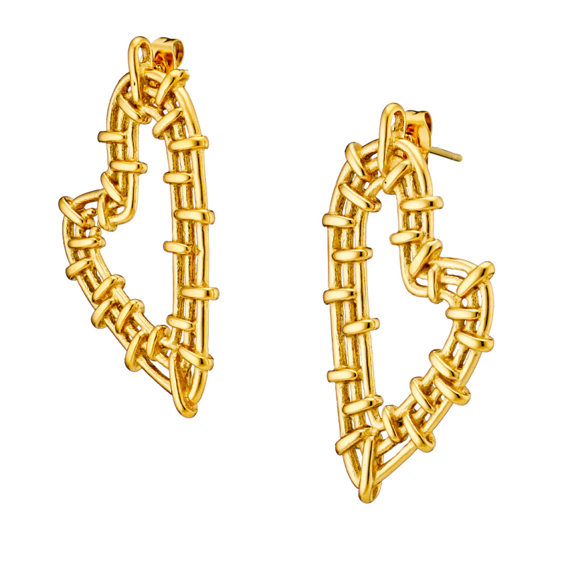 Σκουλαρίκια, επιχρυσωμένα, καρδιές με αγκάθια ατσάλι 316L