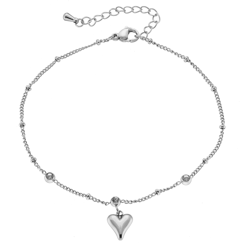 Αλυσίδα ποδιού με καρδιά και ζιργκόν ατσάλι 316L
