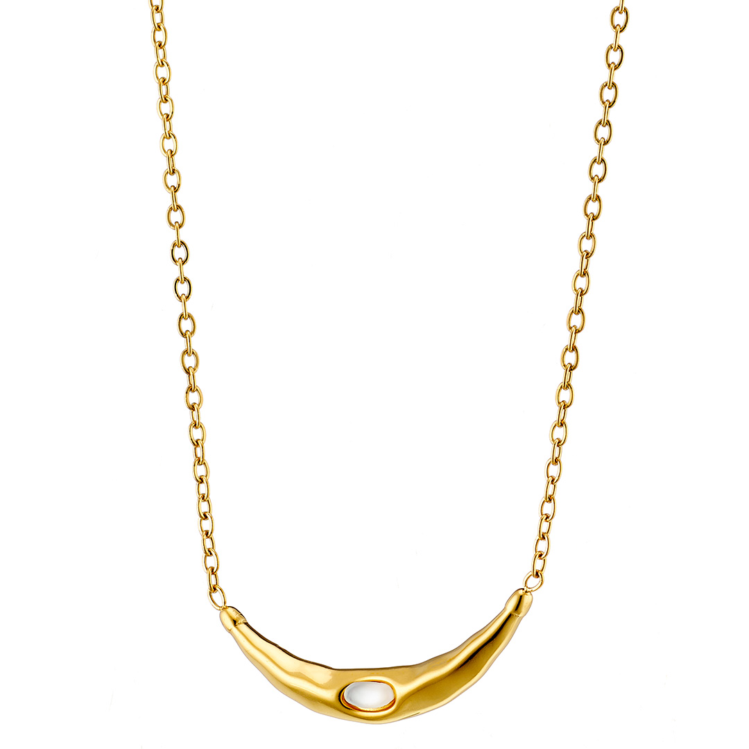 Κολιέ γυναικείο, επιχρυσωμένο, βέργα καμπυλωτή με ένα Cz, ατσάλι 316L