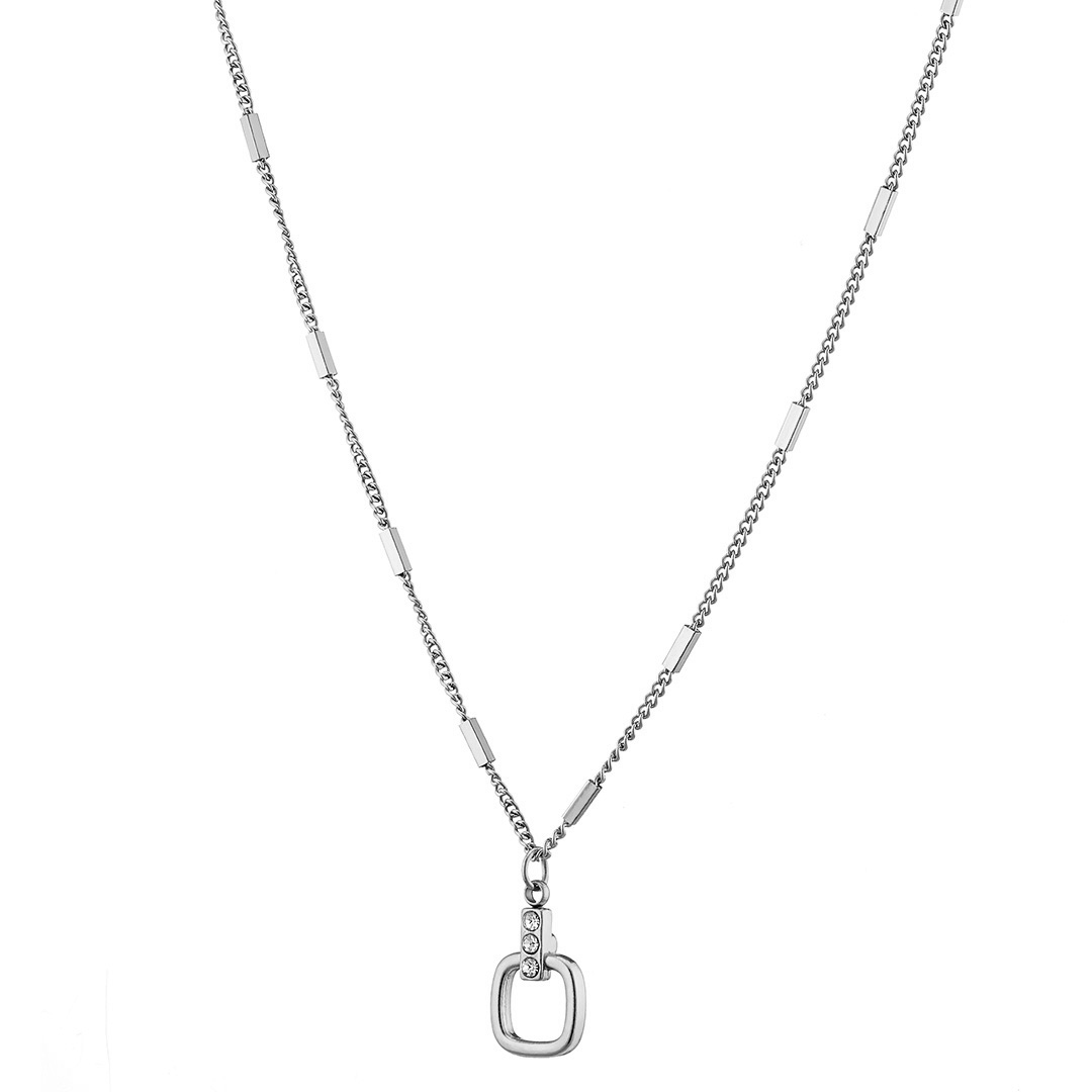 Κολιέ γυναικείο, ασημί, ζιργκόν και μεταλλικούς κύβους, ατσάλι 316L