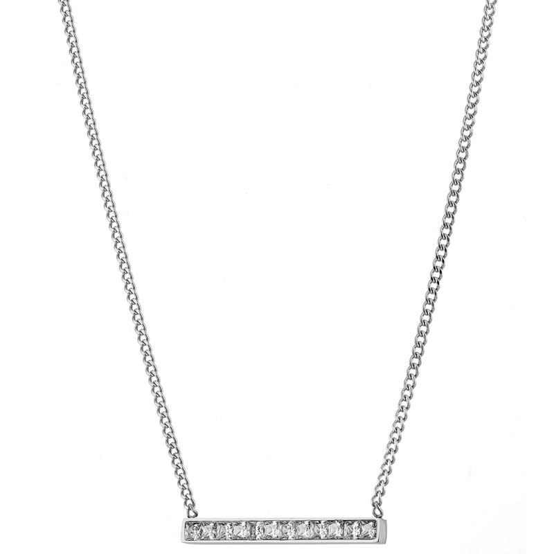 Κολιέ ασημί μπάρα με ζιργκόν ατσάλι 316L