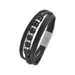 Βραχιόλι ανδρικό Σταυρός με μαύρo δέρμα, ατσάλι 316L