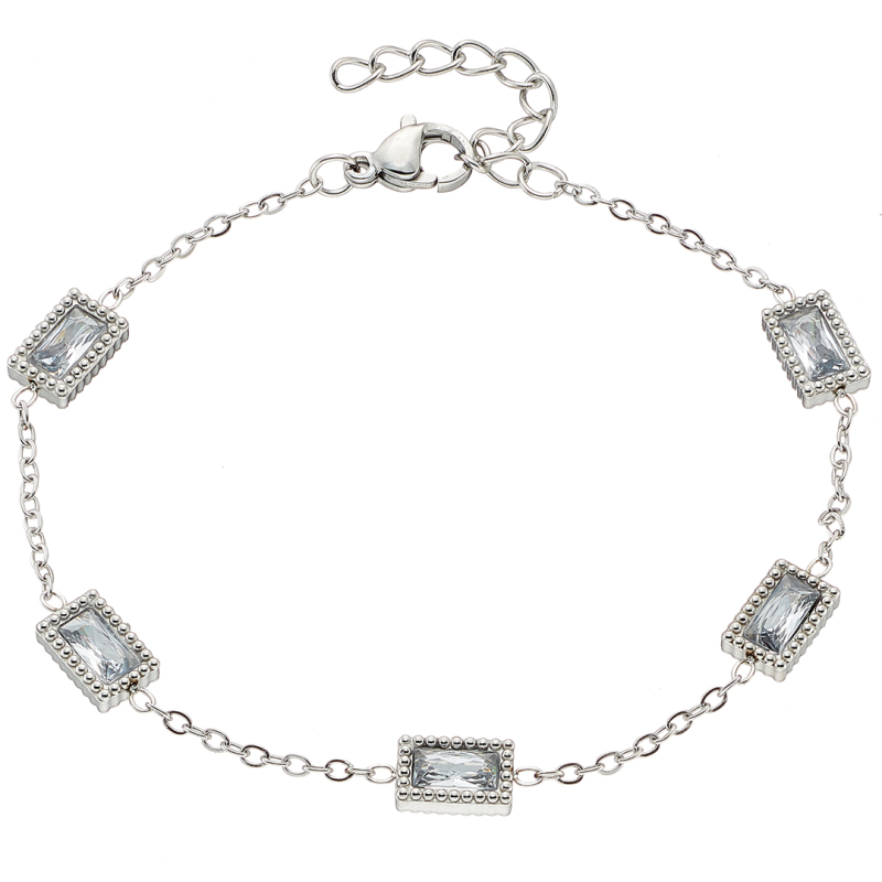 Βραχιόλι ασημί γυναικείο ροζέτα με ασπρες πέτρες ατσάλι 316L