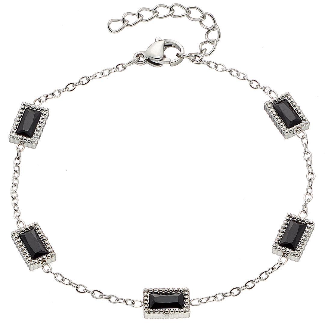 Βραχιόλι ασημί γυναικείο ροζέτα με μαύρες πέτρες ατσάλι 316L