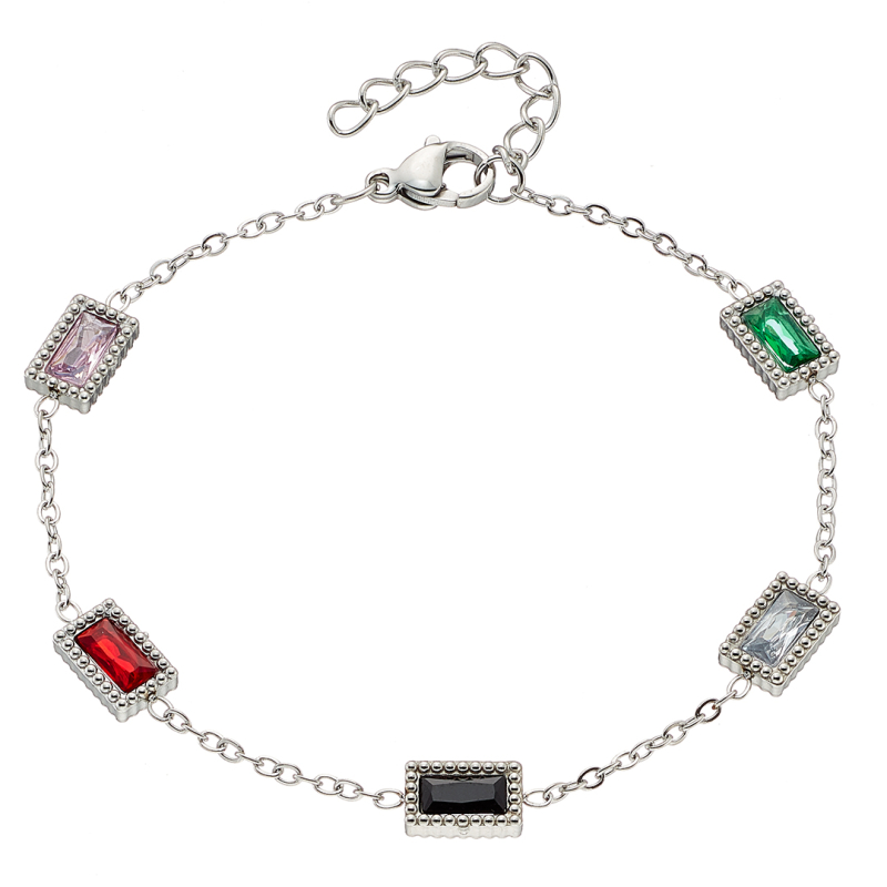 Βραχιόλι ασημί γυναικείο ροζέτα με πολύχρωμες πέτρες ατσάλι 316L