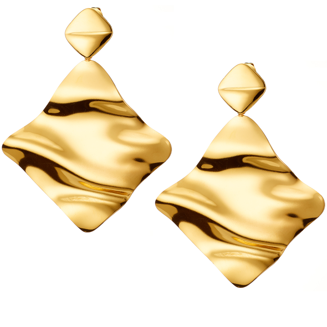 Σκουλαρίκι κρεμαστά επίχρυσα τετράγωνα ατσάλι 316L