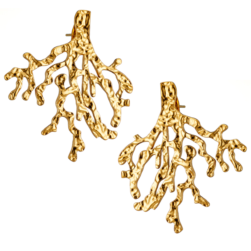 Σκουλαρίκι κρεμαστά επίχρυσα ρίζες ατσάλι 316L