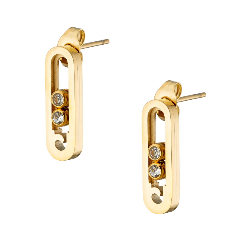 Σκουλαρίκι επίχρυσο με δύο ζιργκόν ατσάλι 316L