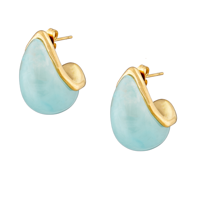 Σκουλαρίκι επίχρυσo κέλυφος με turquise σμάλτο ατσάλι 316L