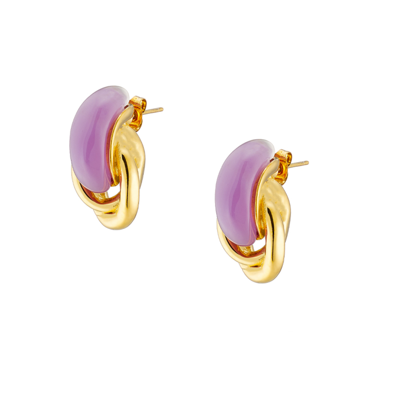 Σκουλαρίκι επίχρυσoι δύο κρίκοι με violet σμάλτο ατσάλι 316L