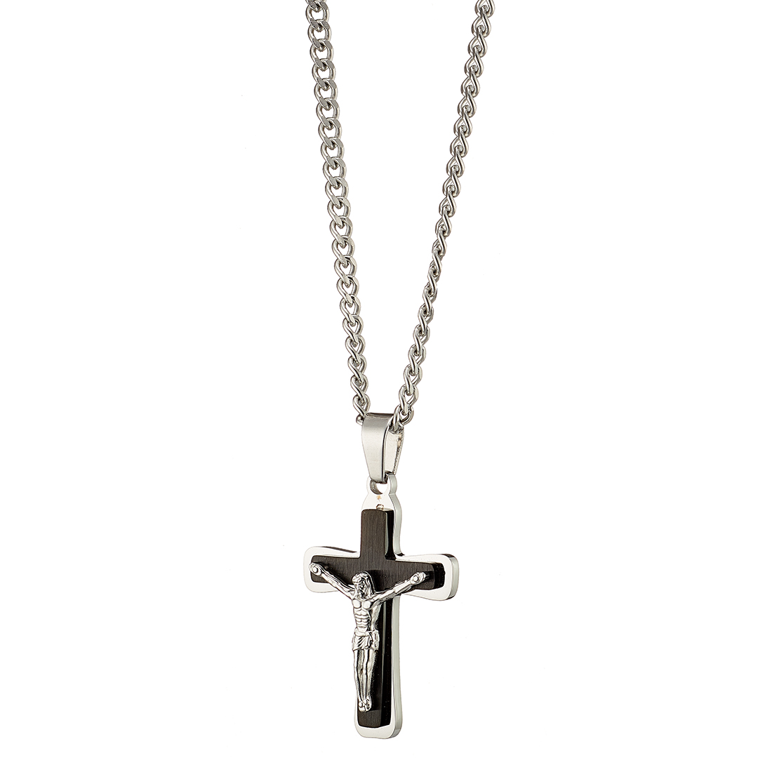 Κολιέ σταυρός αντρικός Εσταυρωμένος, ασημί με μαύρο ατσάλι 316L
