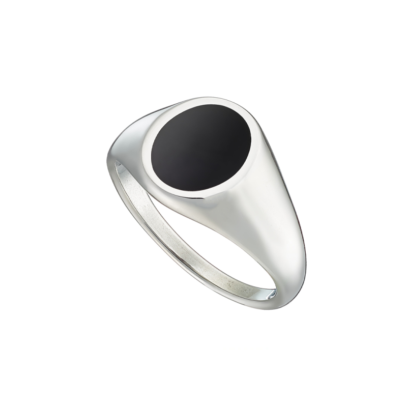 Δαχτυλίδι αντρικό με μαύρη στρογγυλή πλάκα, ατσάλι 316L