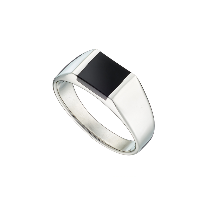 Δαχτυλίδι αντρικό με μαύρη τετράγωνη πλάκα, ατσάλι 316L