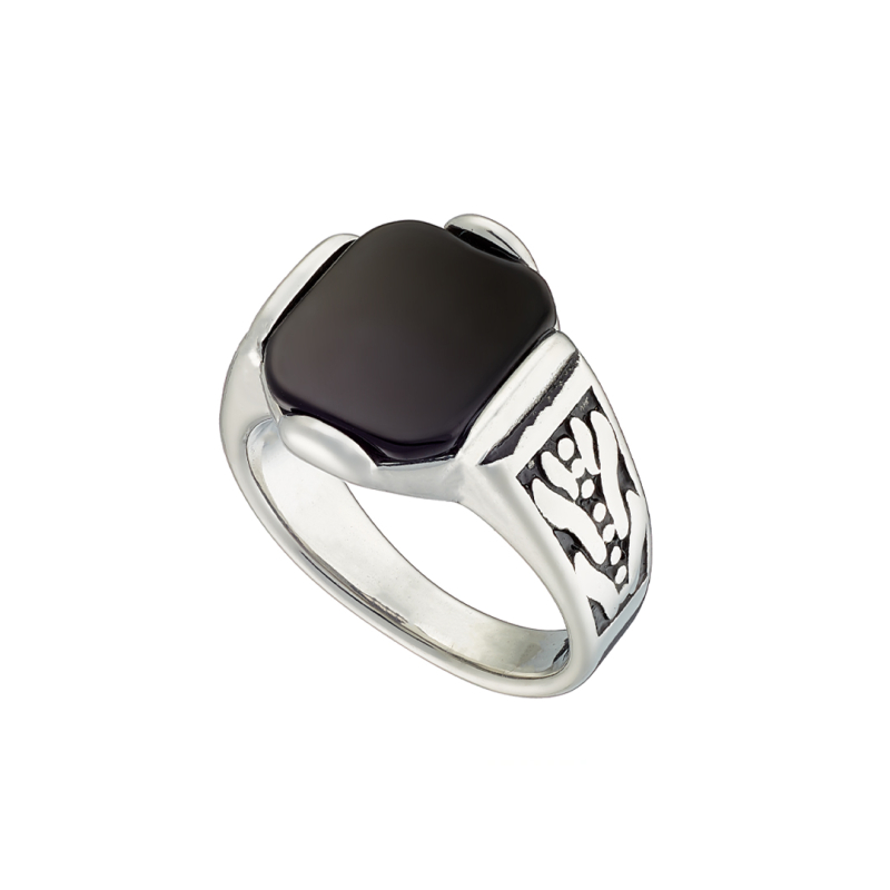 Δαχτυλίδι αντρικό με μαύρη τετράγωνη πέτρα, ατσάλι 316L