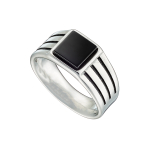 Δαχτυλίδι αντρικό με μαύρη τετράγωνη πέτρα, ατσάλι 316L